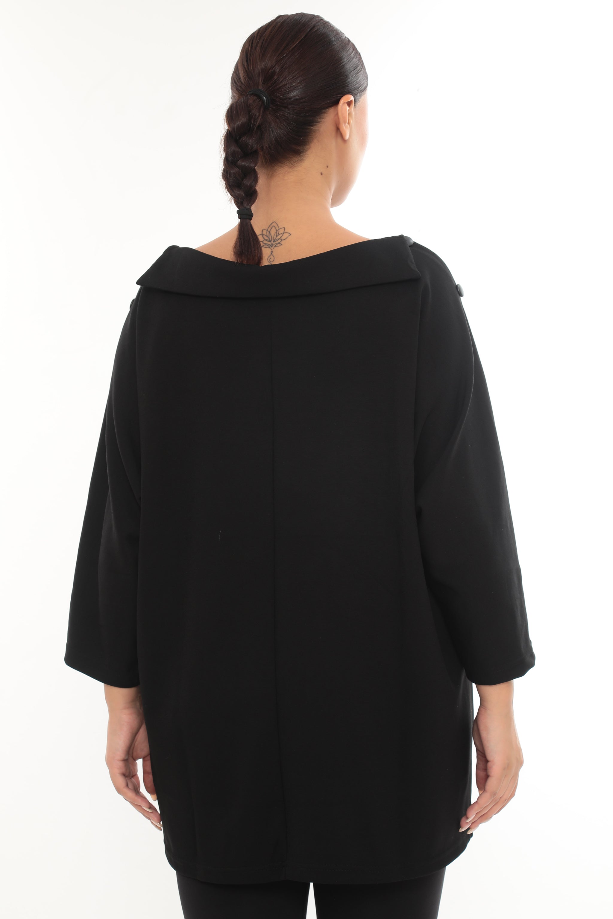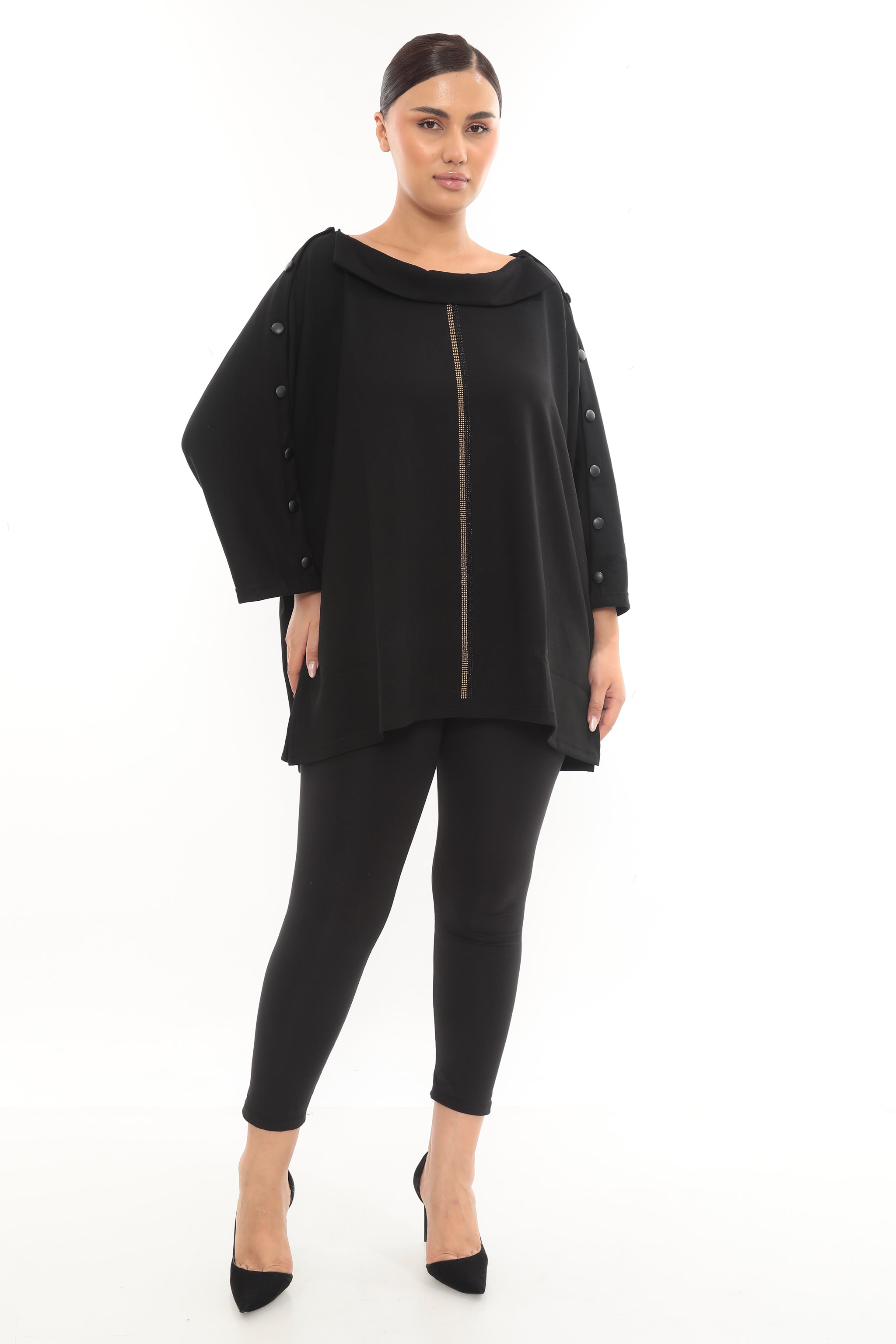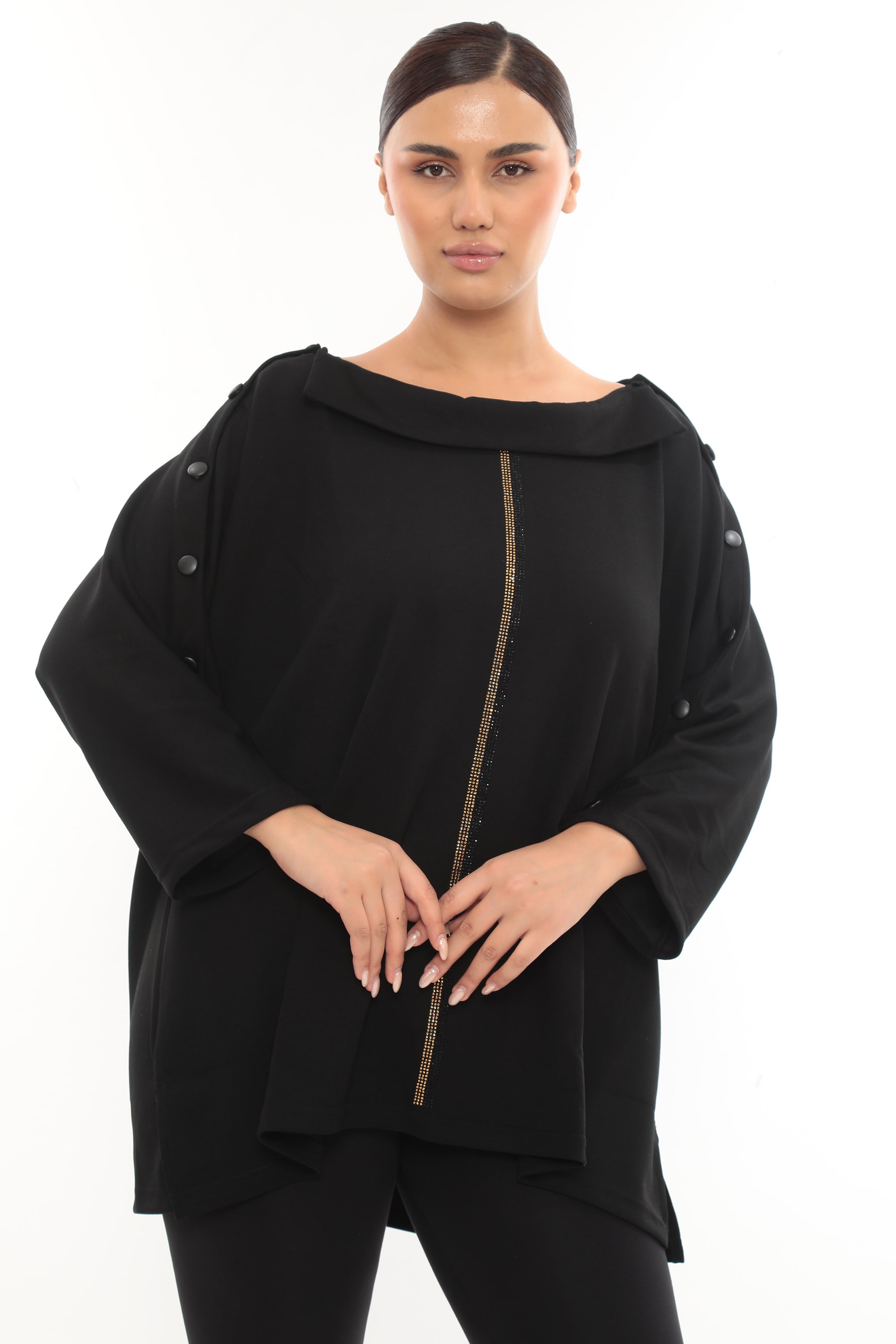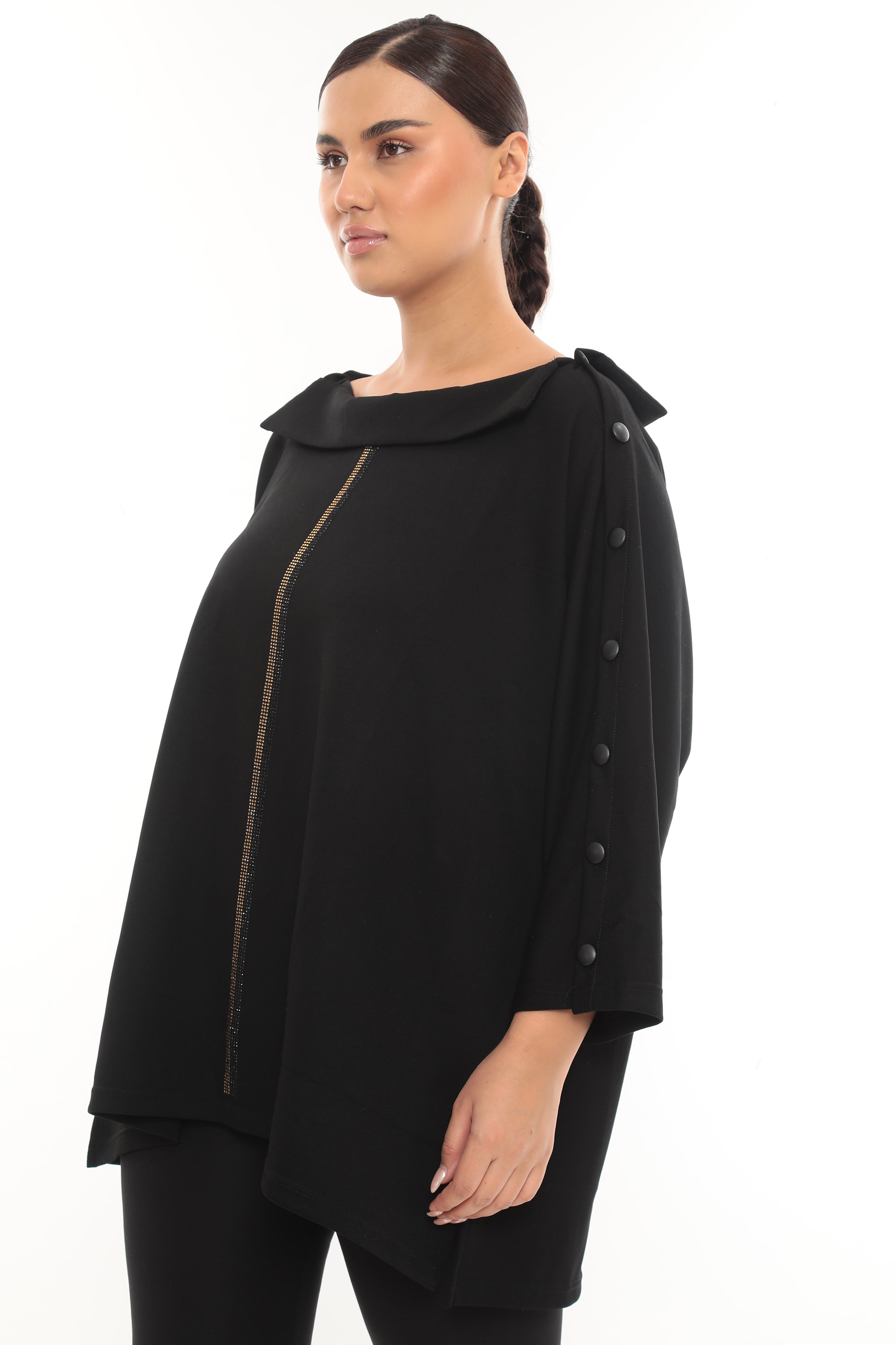 Asymetrická designová tunika s knoflíky a zlatým detailem