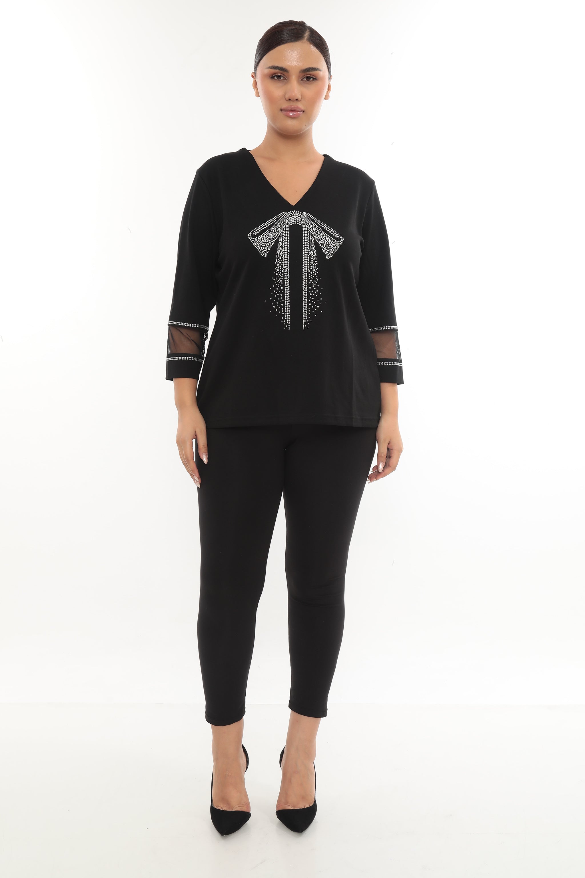 Dámská elegantní halenka s V-výstřihem a kamínkovou mašlí