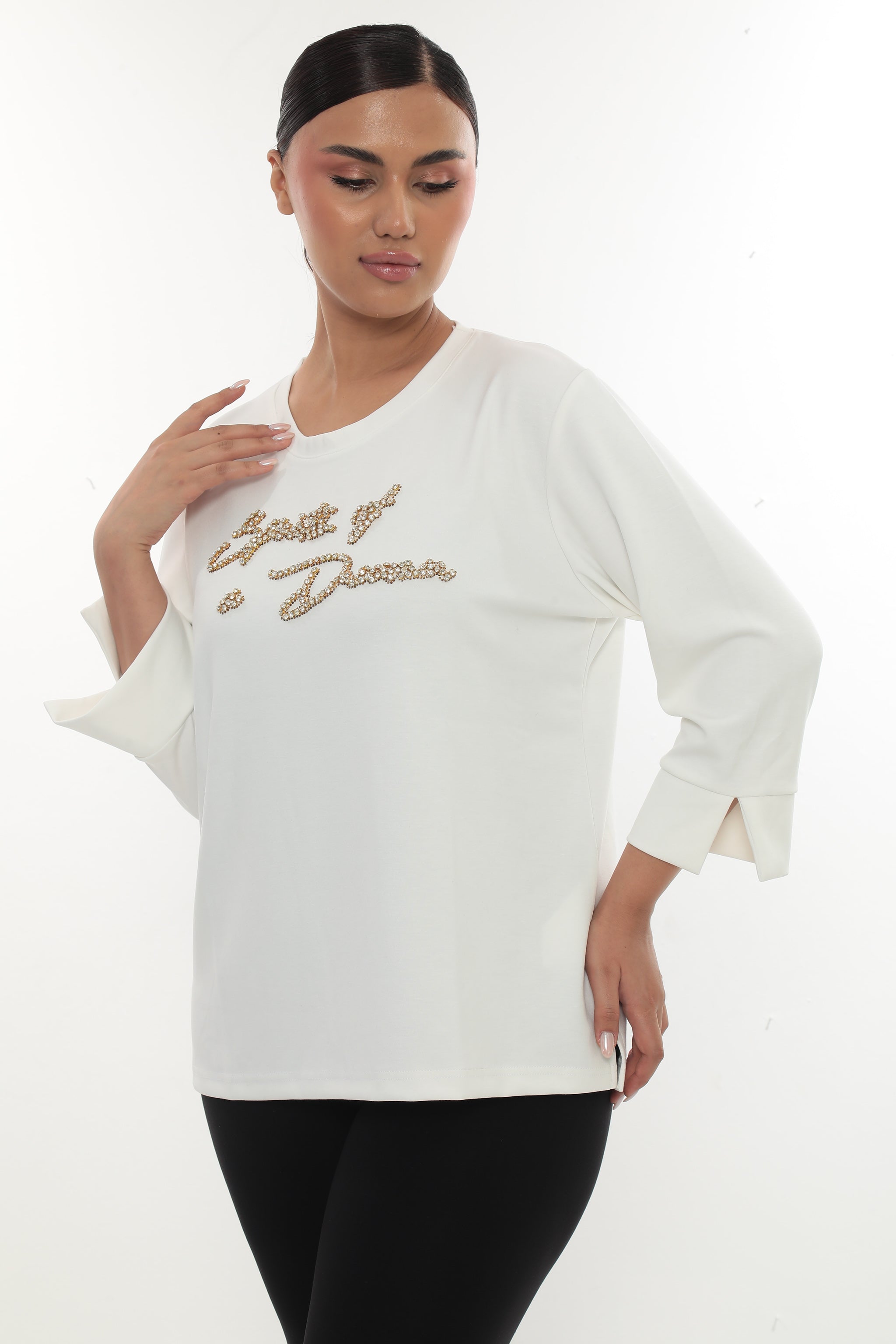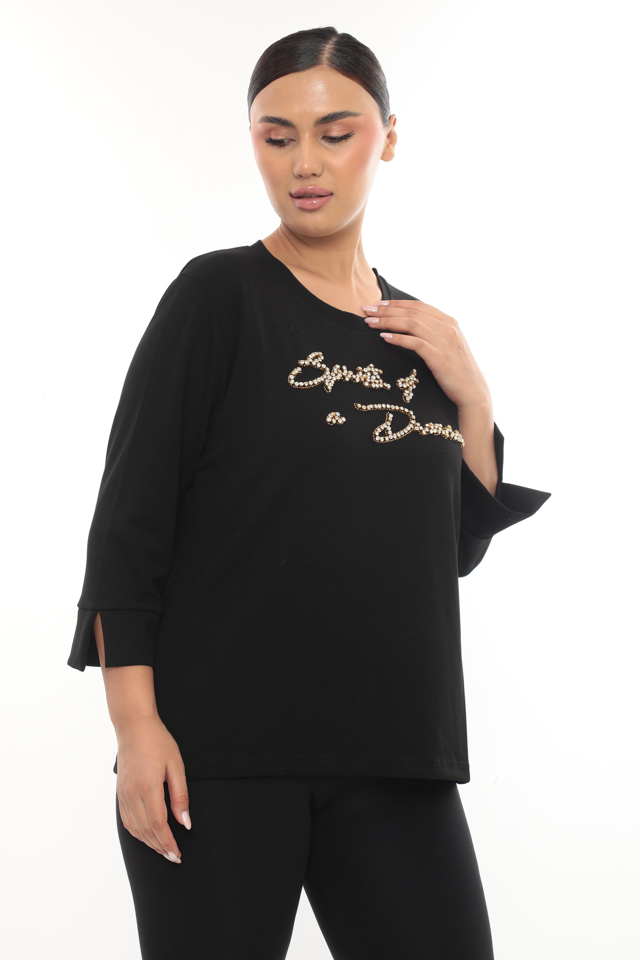Dámská halenka "Spirits of a Dream" se zlatými kamínky - černá/bílá