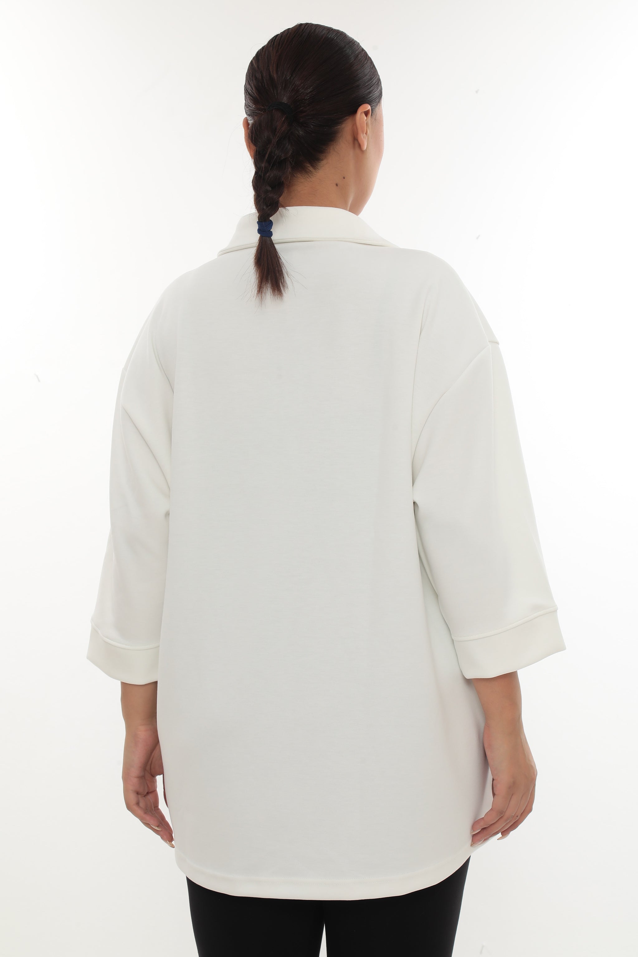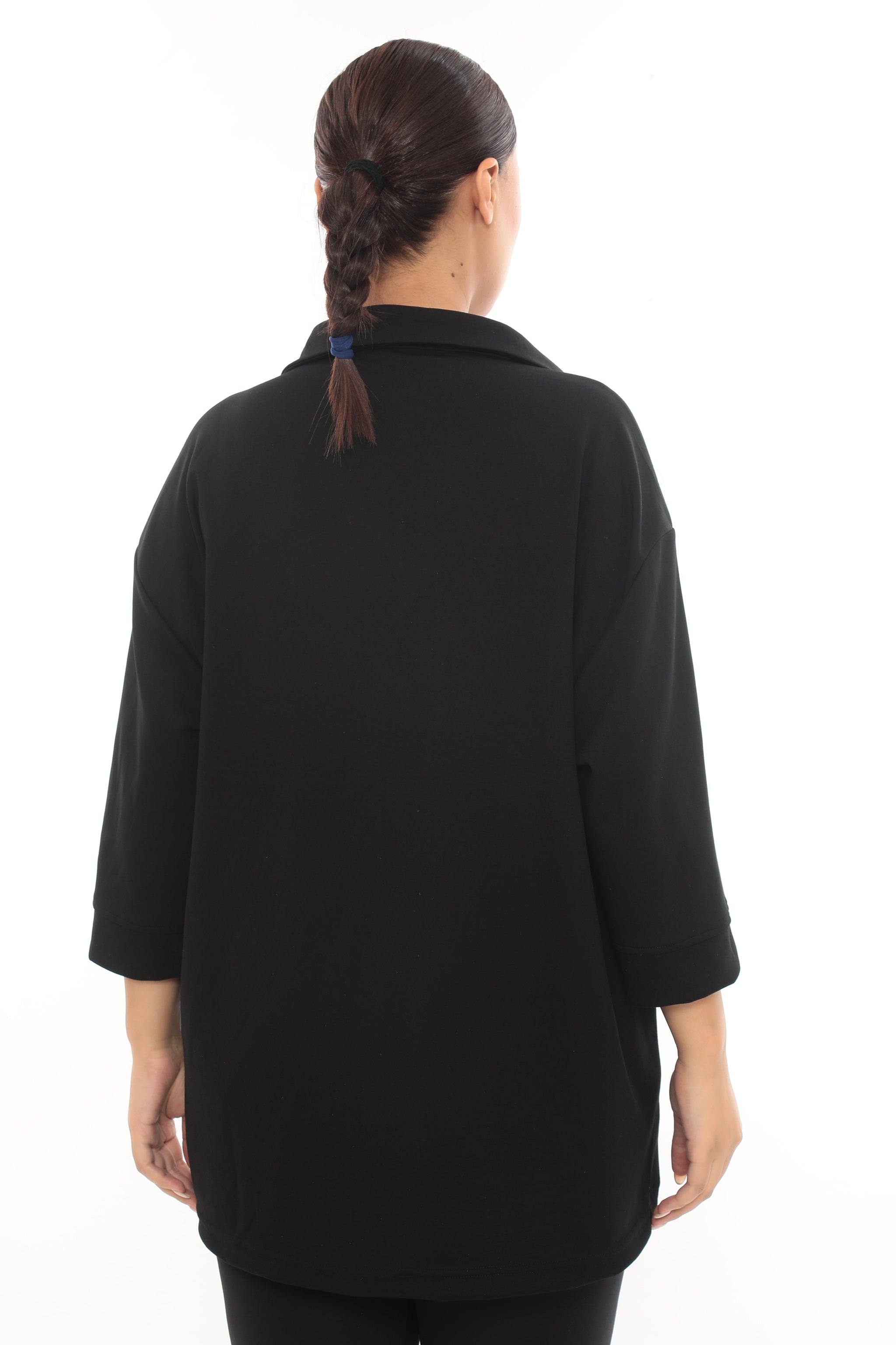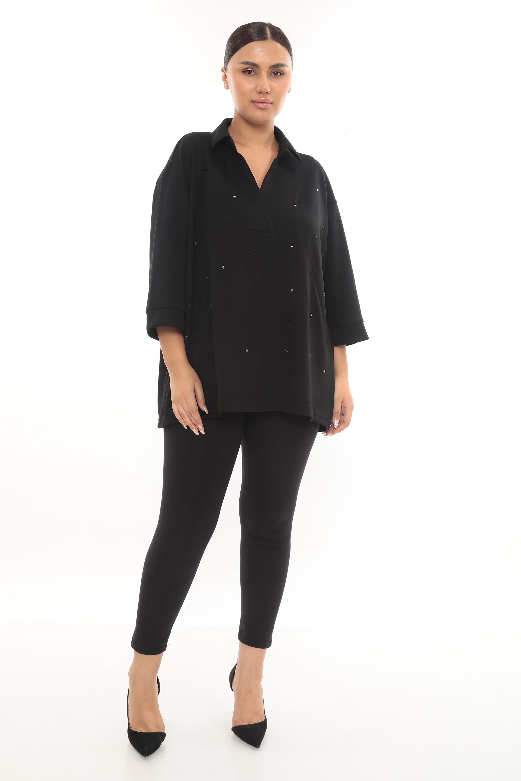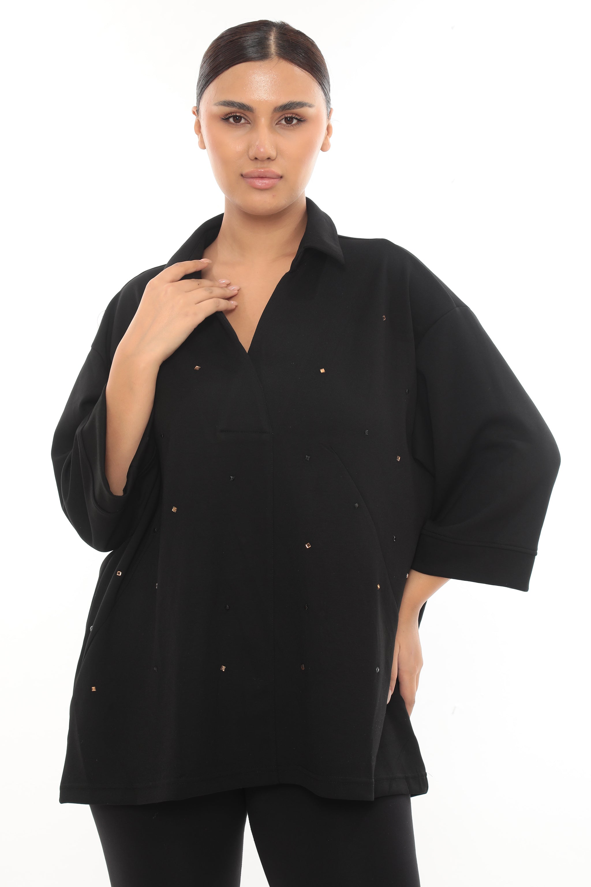 Dámská oversize mikina s košilovým límečkem a kamínky