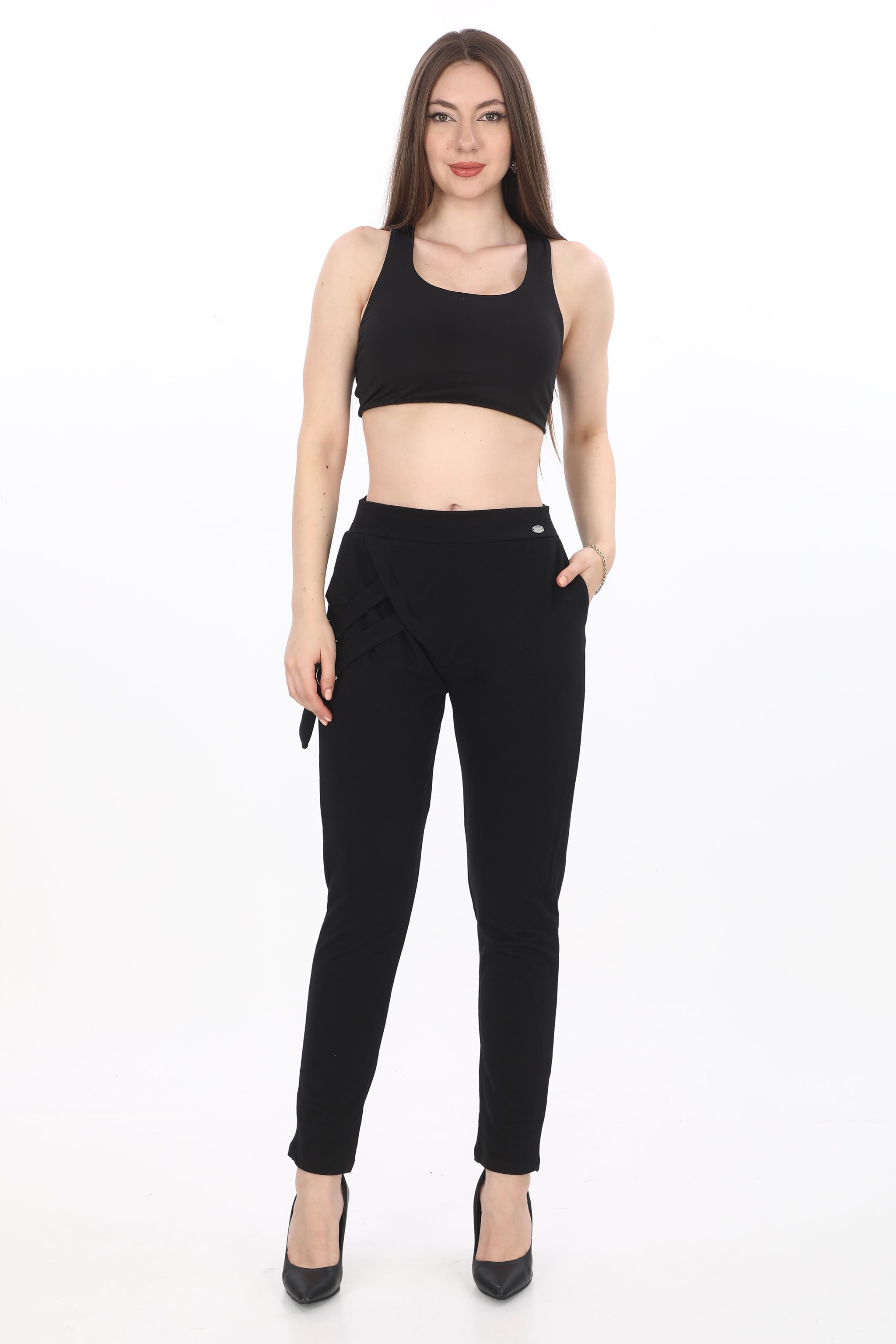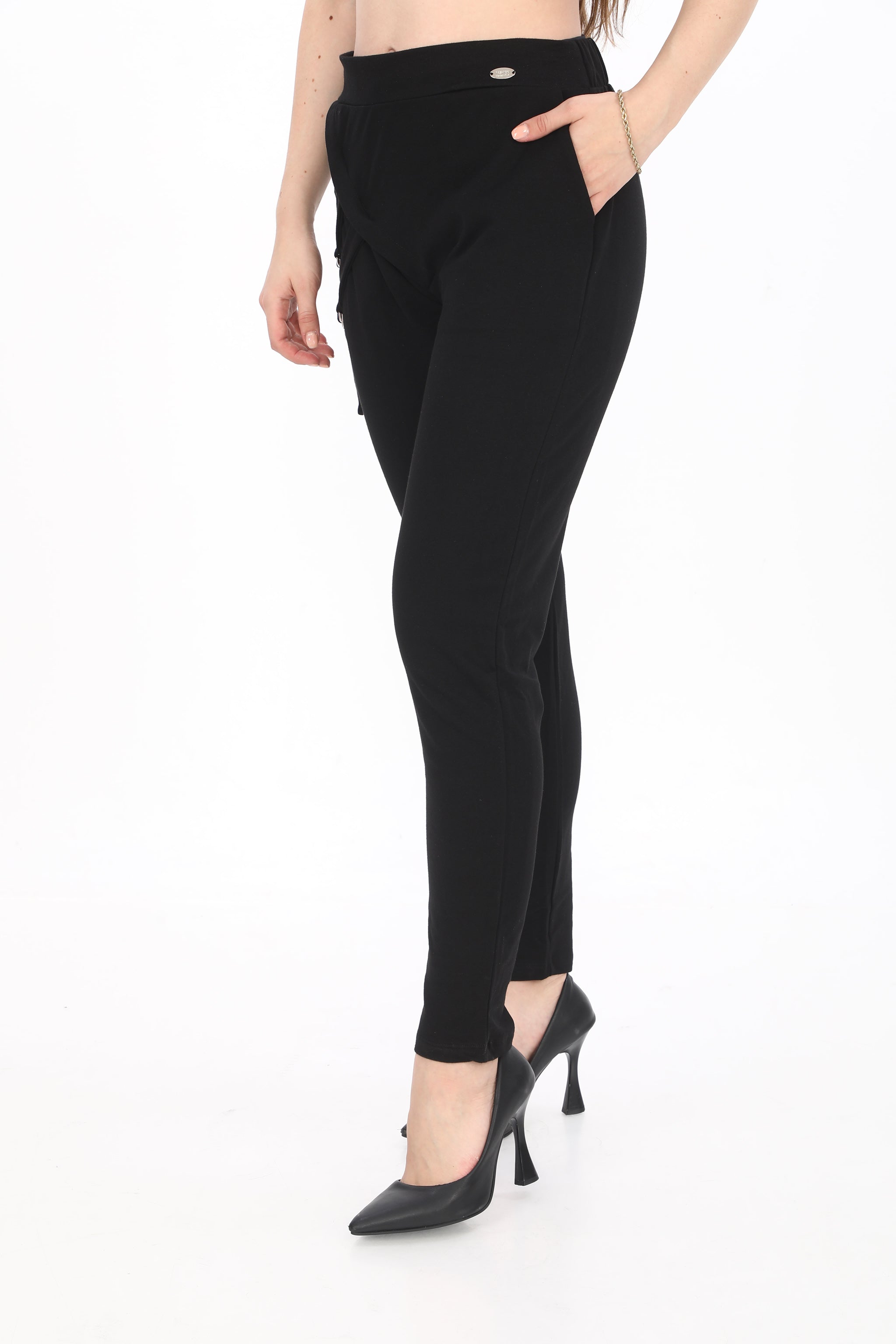 Dámské černé bavlněné kalhoty s elastickým pasem