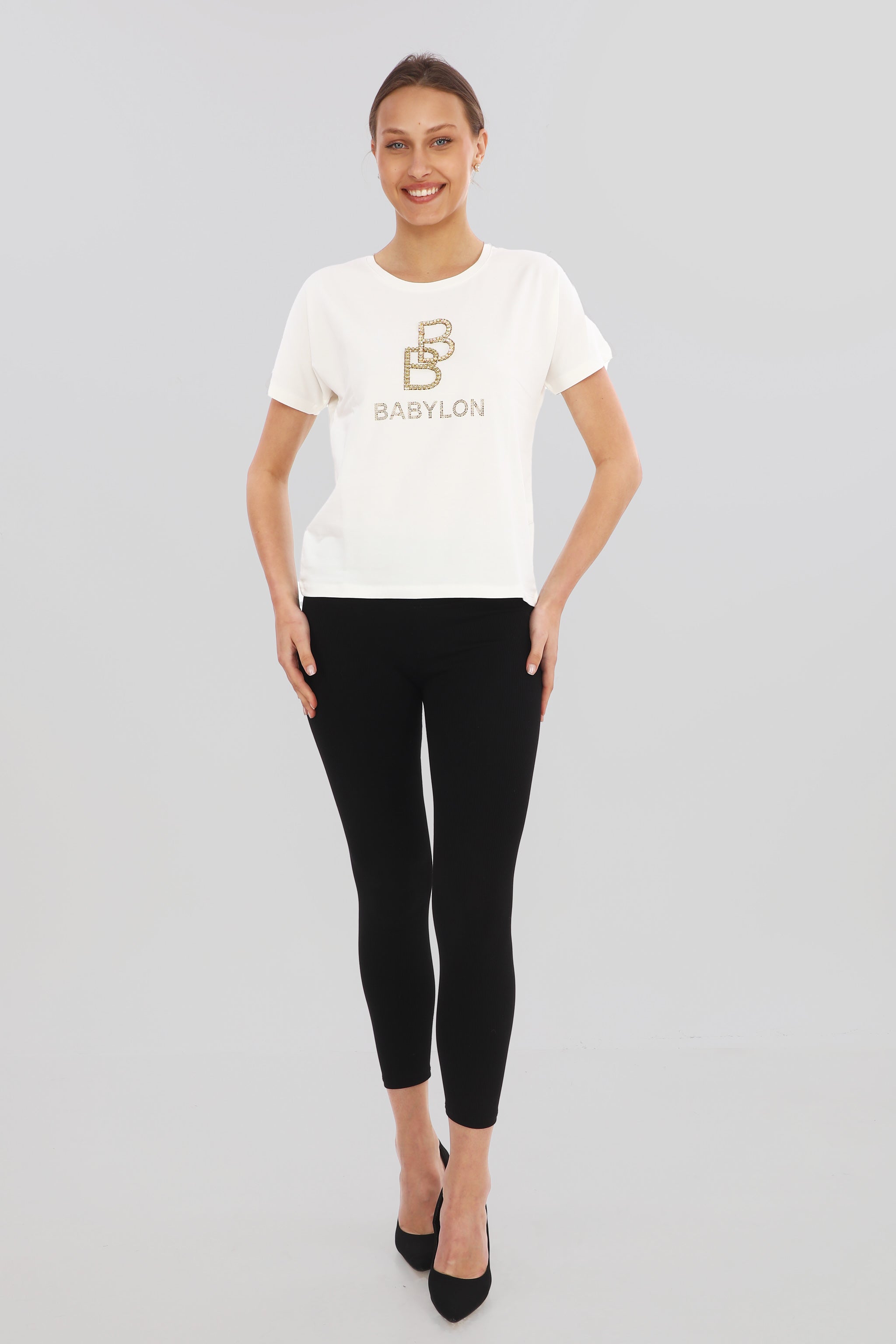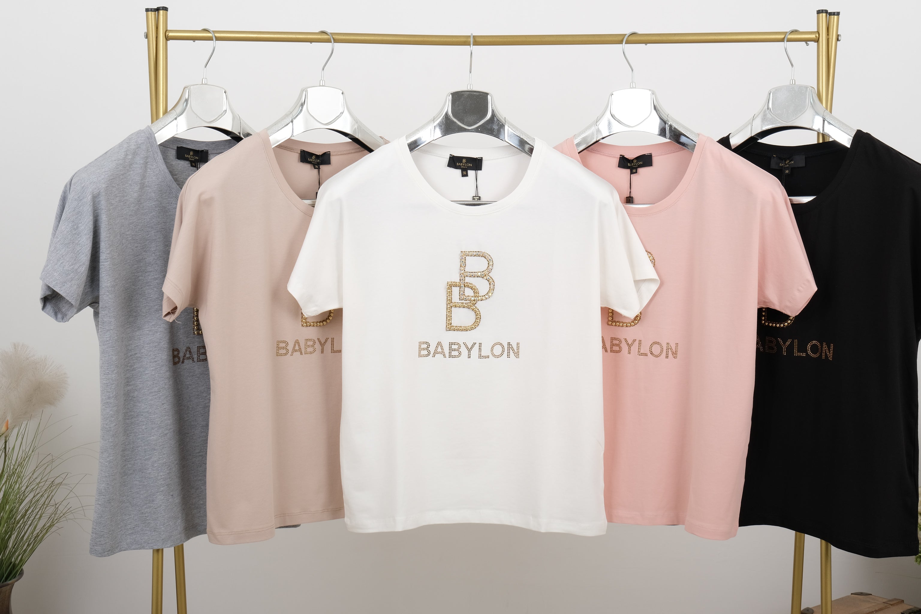 Dámské tričko s kamínky BABYLON Classic - zlatý nápis BB