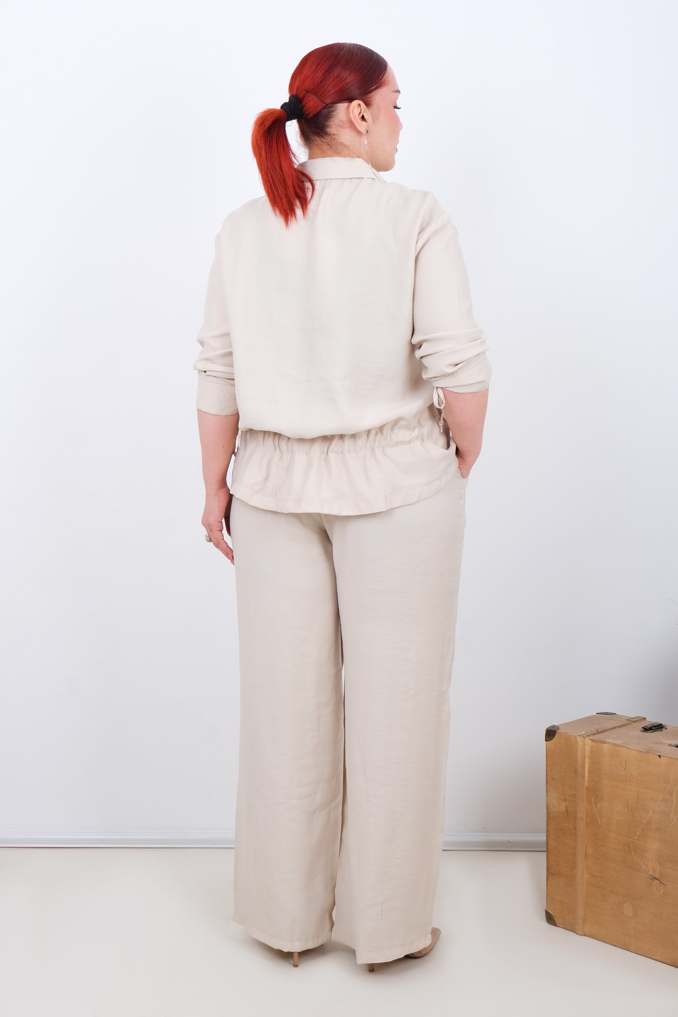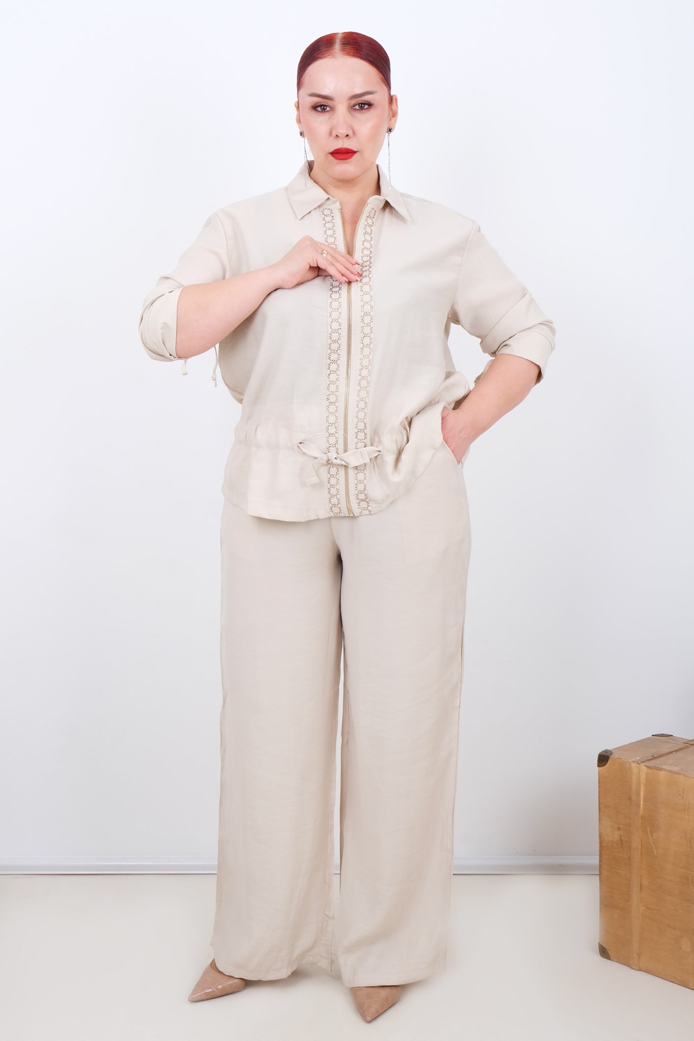 Luxusní dámský komplet modal - košile s krajkou a široké kalhoty